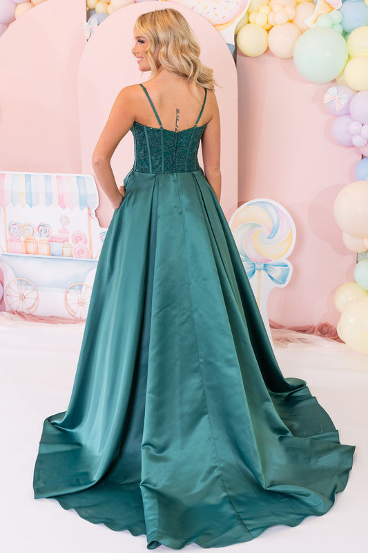 Tiffanys Prom Zazu Dark Green Lace Up Back Prom DressRegular price £279.00 GBPRegular priceUnit price / per-