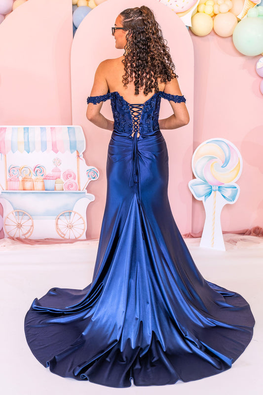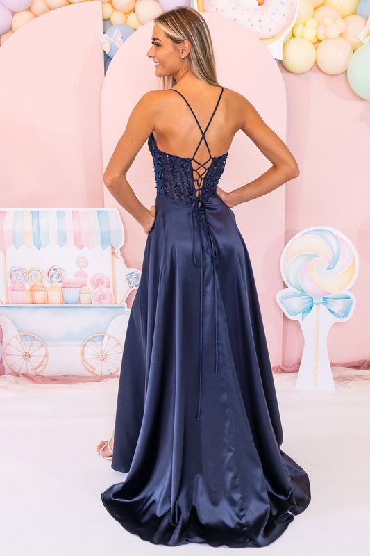 Prom Frocks PF1110 French Navy Stretch Satin Prom DressRegular price £449.00 GBPRegular priceUnit price / per
